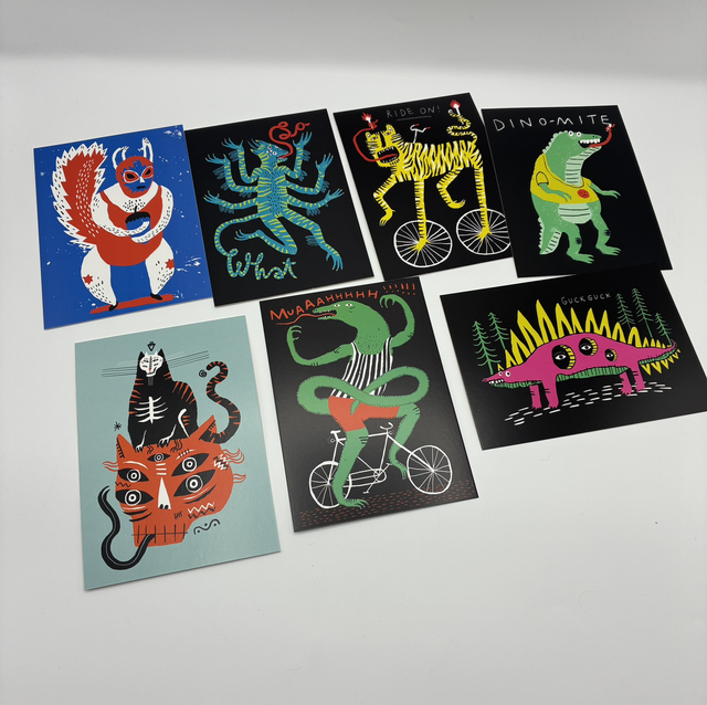 Set mit 7 Postkarten Din A6 mit Muah-Motiven.